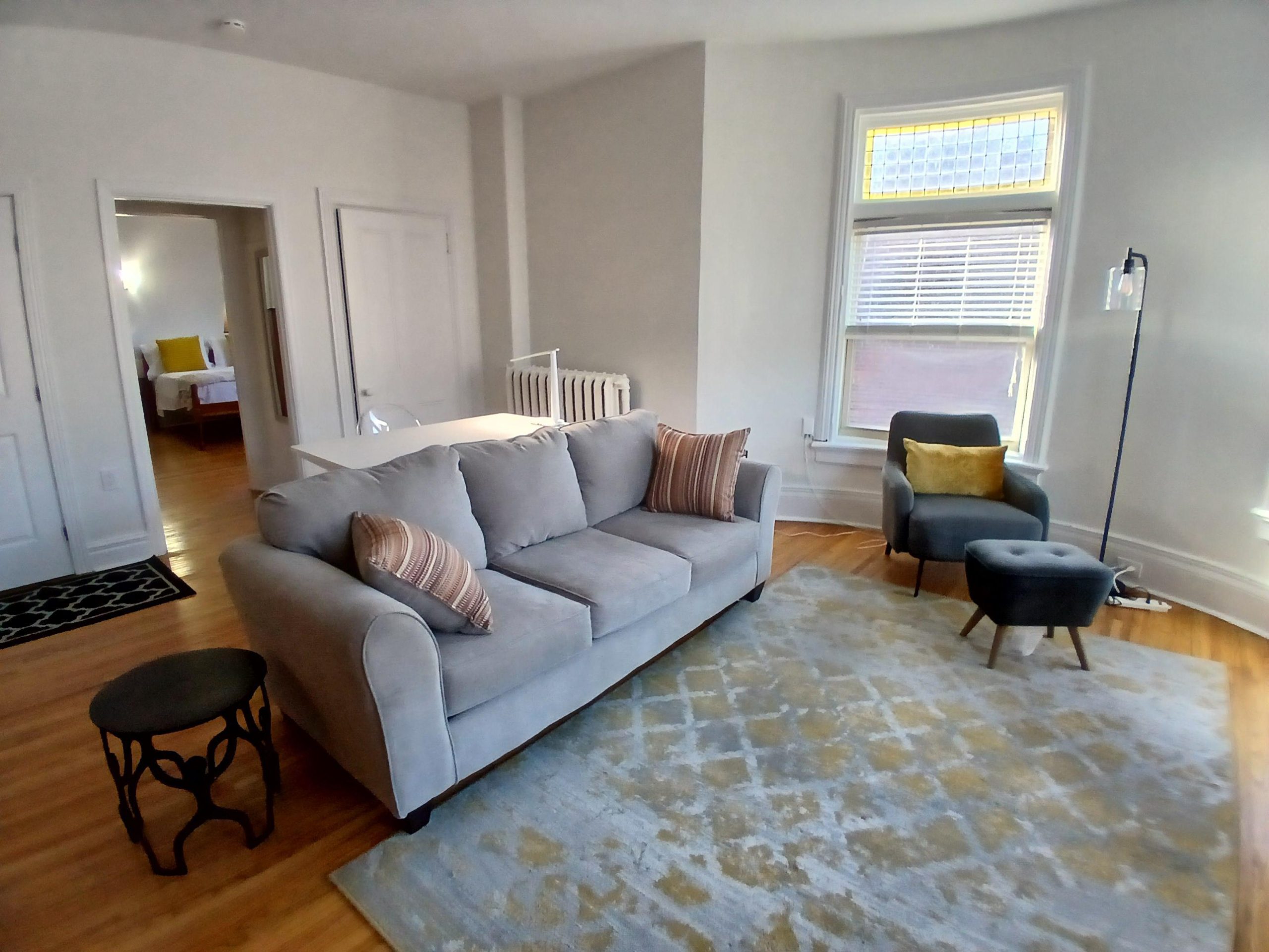 Discover your new home in this charming 1 bedroom, 1 bathroom apartment, featuring high ceilings and large windows that fill the space with natural light. Enjoy the convenience of in-suite laundry and a private balcony perfect for relaxing after a long day. This mature building is ideally located just minutes from Queens Bioscience, with grocery stores, restaurants, and more just a short stroll away. The apartment comes fully furnished, with updates on the way, and will be freshly painted for a modern touch. Parking is available for $100/month, making this the perfect blend of comfort and convenience.