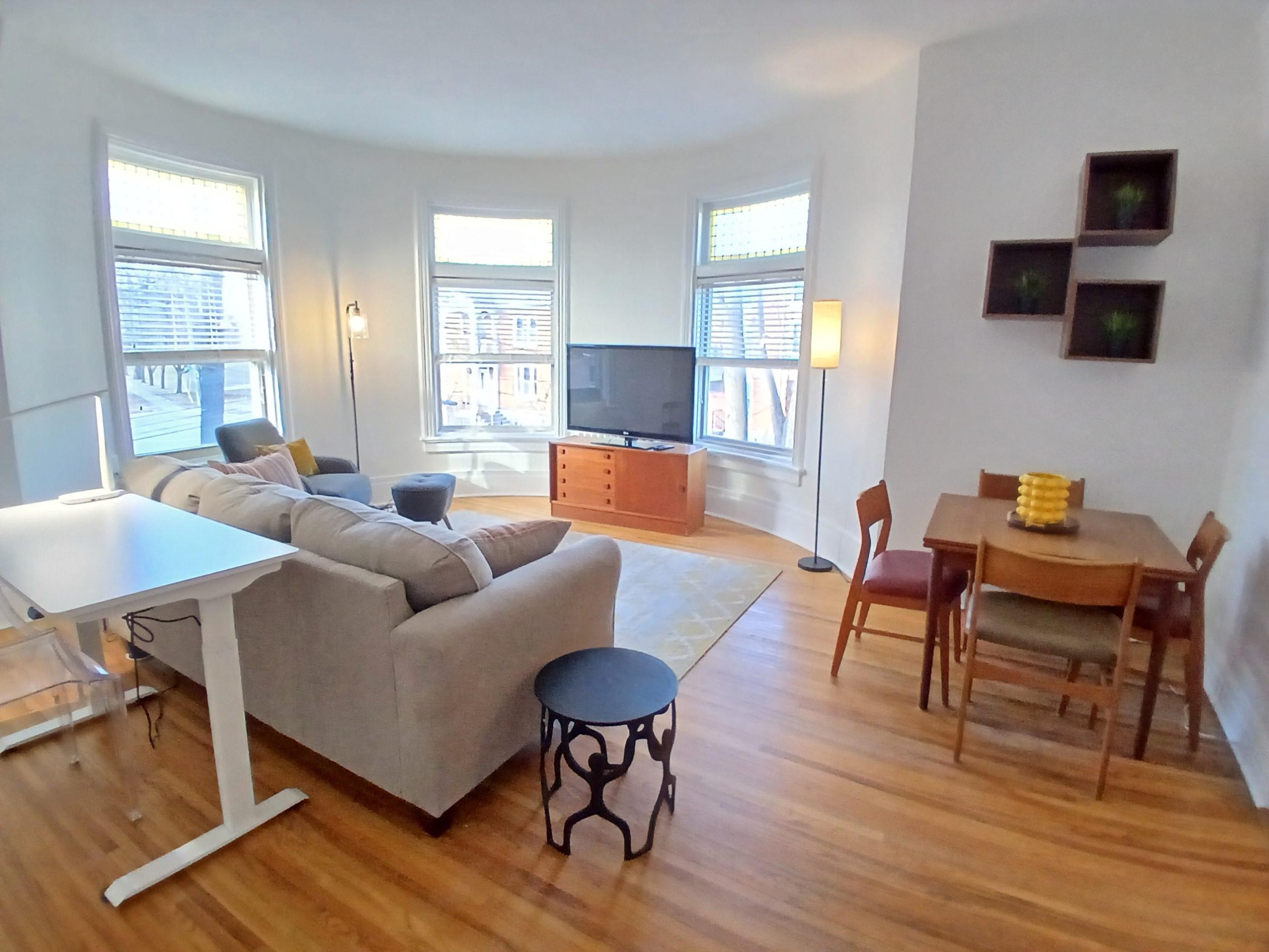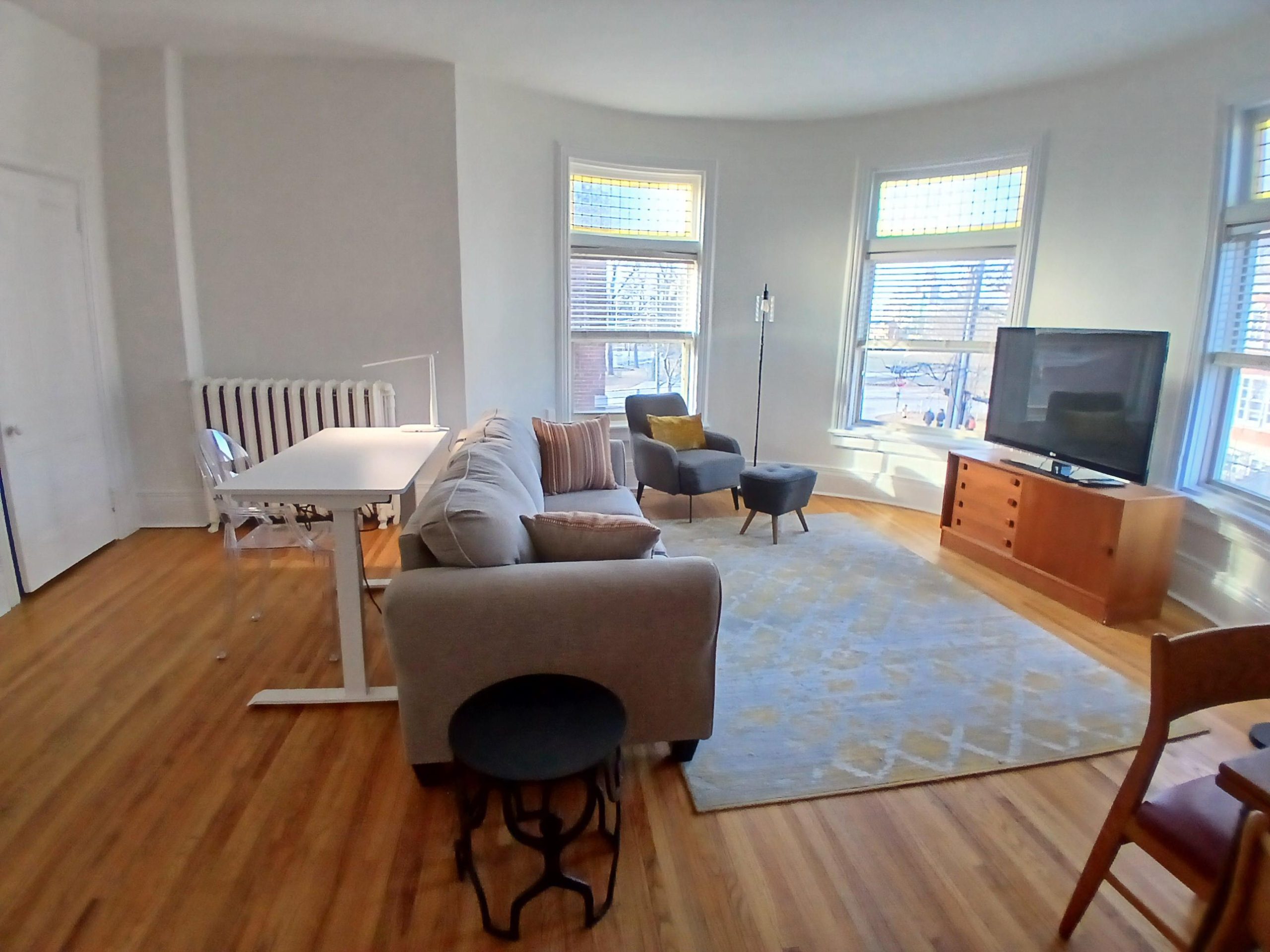 - High ceilings and large windows