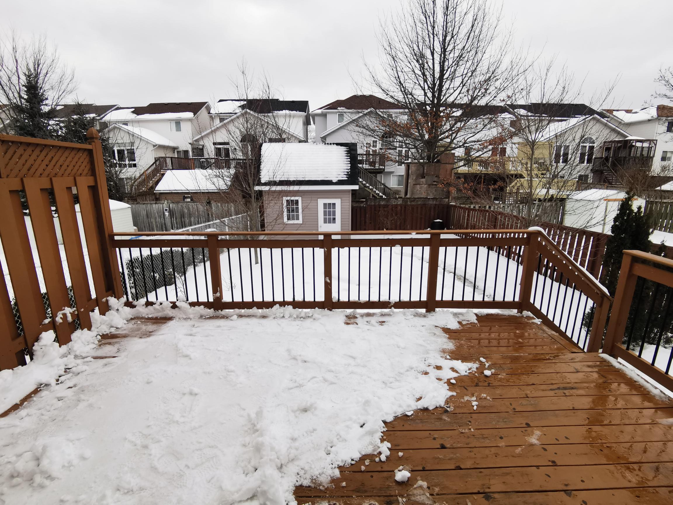 - Exit into a fully fenced yard with additional storage in shed