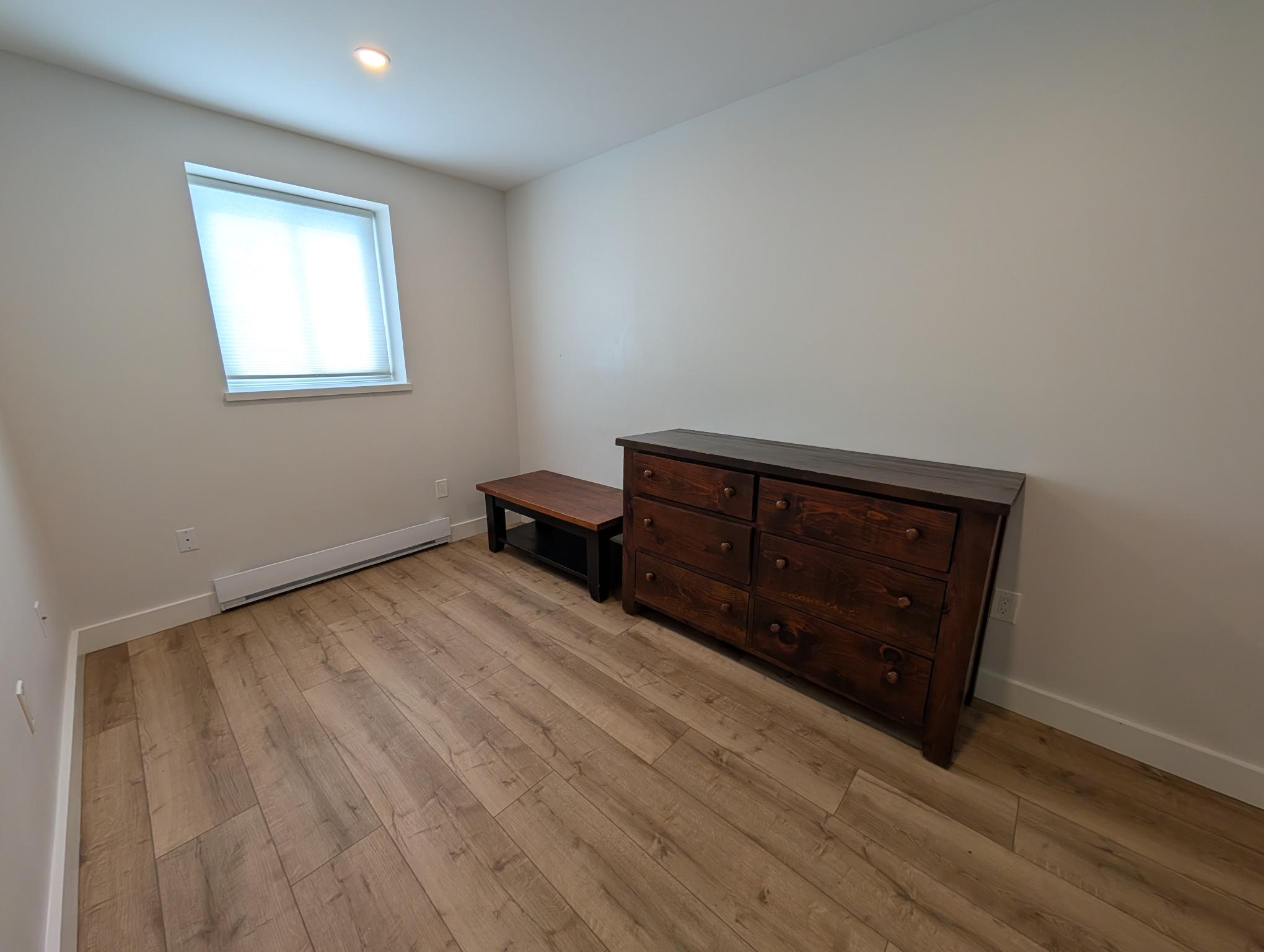 This newly renovated 1-bedroom apartment offers modern style and smart functionality in a unique split-level layout. Enter through a large, secure building entry, with the unit featuring a spacious storage nook just inside the door for added convenience. The apartment is accessed by going down a short flight of stairs, while the unit itself sits on the main floor, creating a private and comfortable feel. An open-concept design with a large picture window makes the living area perfect for hosting, complemented by high-efficiency kitchen appliances and stylish laminate flooring throughout. Finished with a full 4-piece bathroom, modern details, coin laundry on each floor, and onsite parking may be available—please inquire.